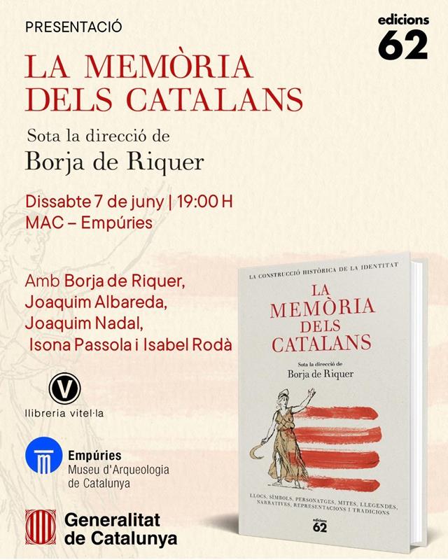 Dissabte 7/6, a les 19:00h: Presentació de "La memòria dels catalans", sota la direcció de Borja de Riquer